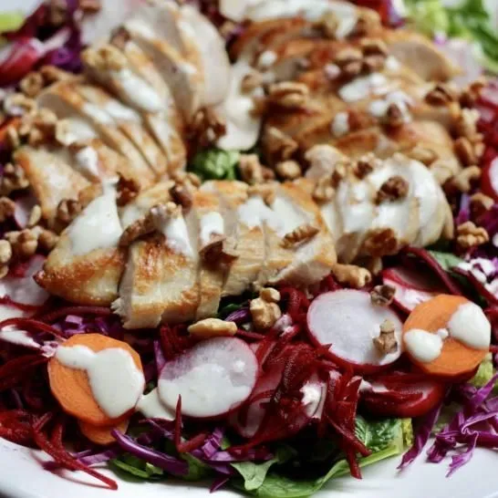 Recipe Details: Rainbow Salad with Chicken and Creamy Lemon Dressing